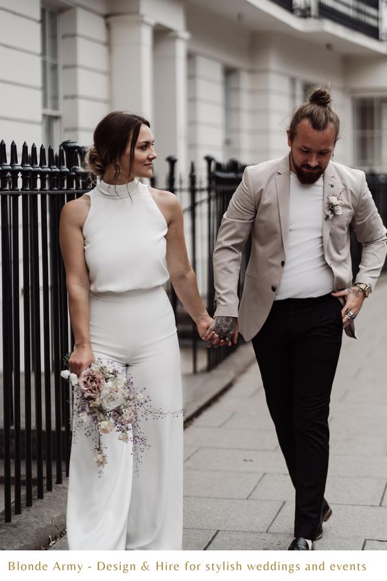 Simple Sheath Hig Neck Beach Boho Wedding Jumpsuit Bridal Jumpsuits