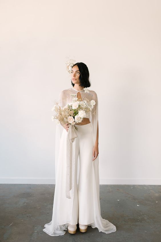 Simple Two Pieces with Shawl Beach Boho Wedding Jumpsuit Bridal Jumpsuits