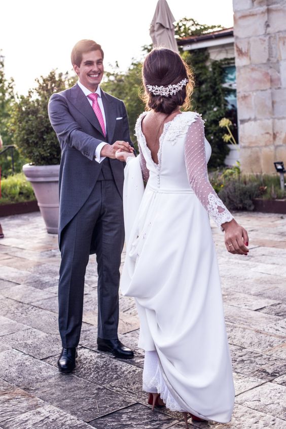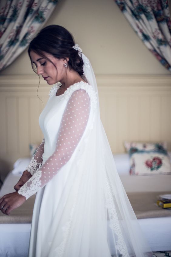 Simple Polka Dot Sheer Long Sleeve Wedding Dress Bridal Dress
