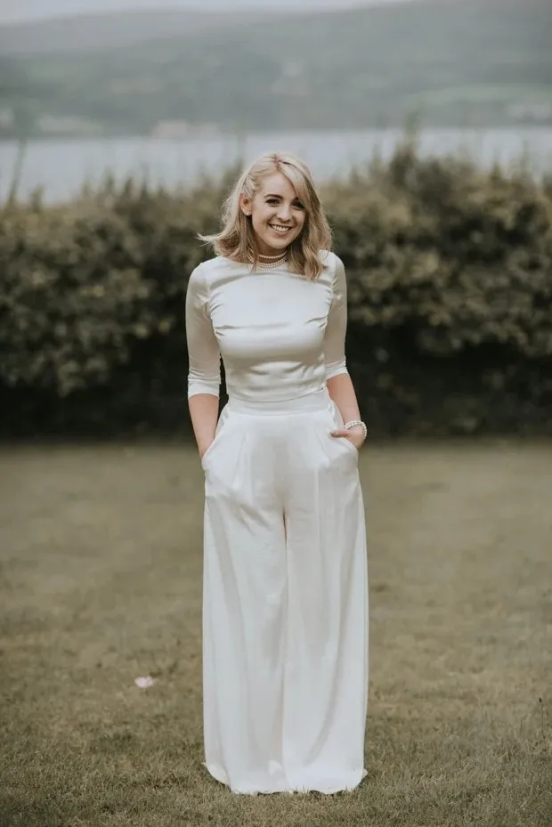 Simple Sheath Half Sleeve Beach Wedding Jumpsuit Bridal Jumpsuit with Shawl