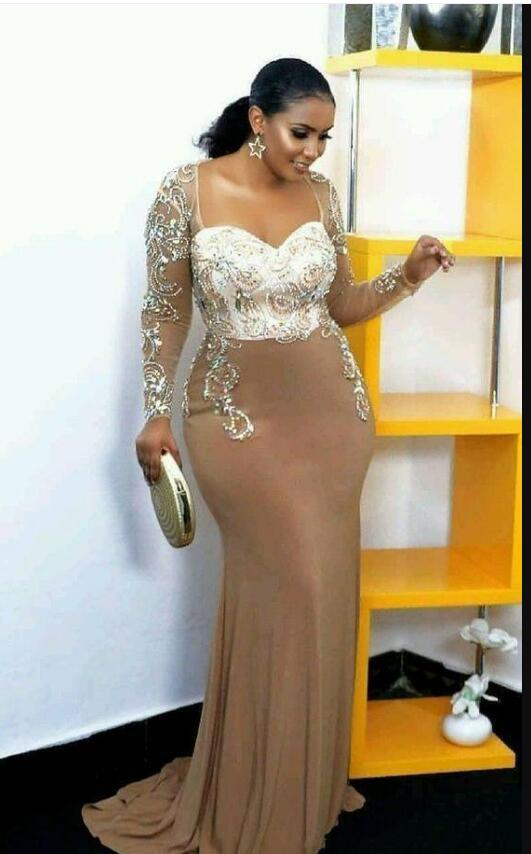 Plus Size Mermaid Mother Of The Bride Dress Long Sleeves Beaded Champagne Mother Party Dresses Mother Formal Wear