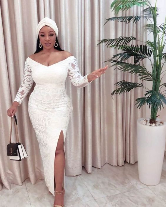 Elegant V Neck Long Sleeve Lace Wedding Dress Bridal Dress