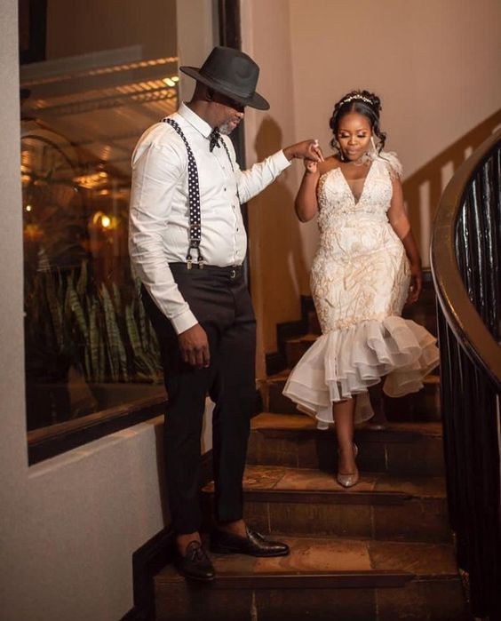 Simple Tea-length Lace African Wedding Dress Bridal Dress