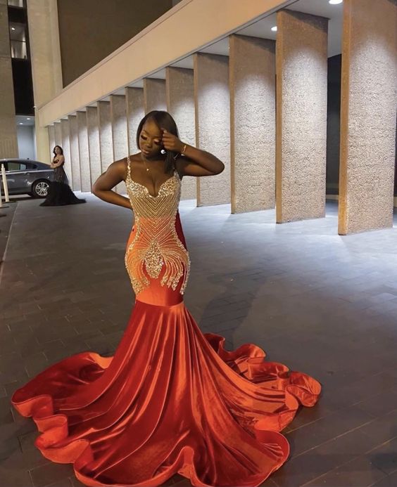 Orange Mermaid Lace Afrcian Prom Dress Evening Dress