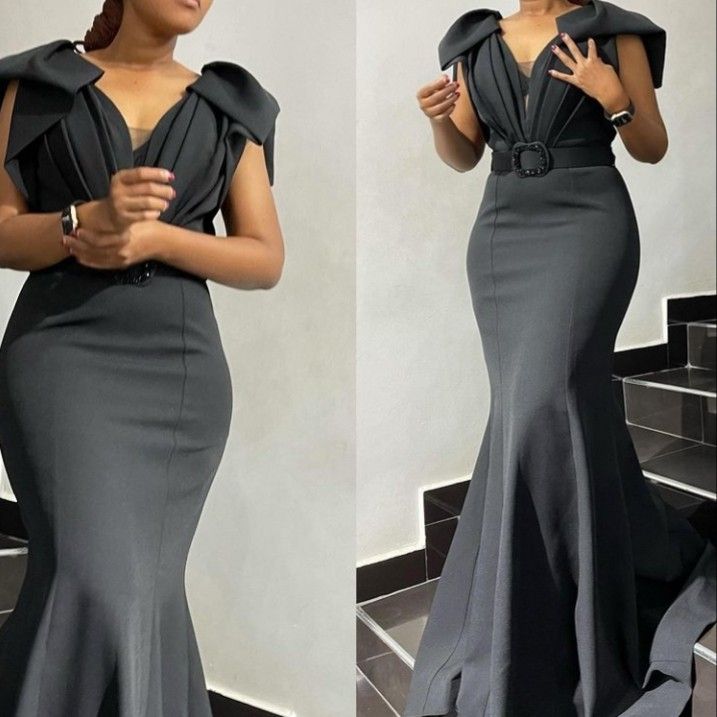 Light Black Mermaid V Neck Afrcian Prom Dress Evening Dress