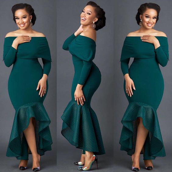 Dark Green Mermaid Simple Afrcian Prom Dress Evening Dress