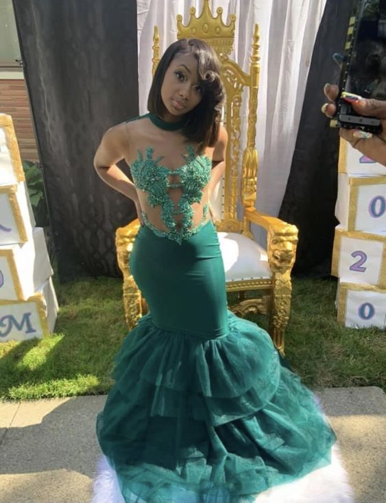 Green Mermaid Lace Appliques African Prom Dress Evening Dress