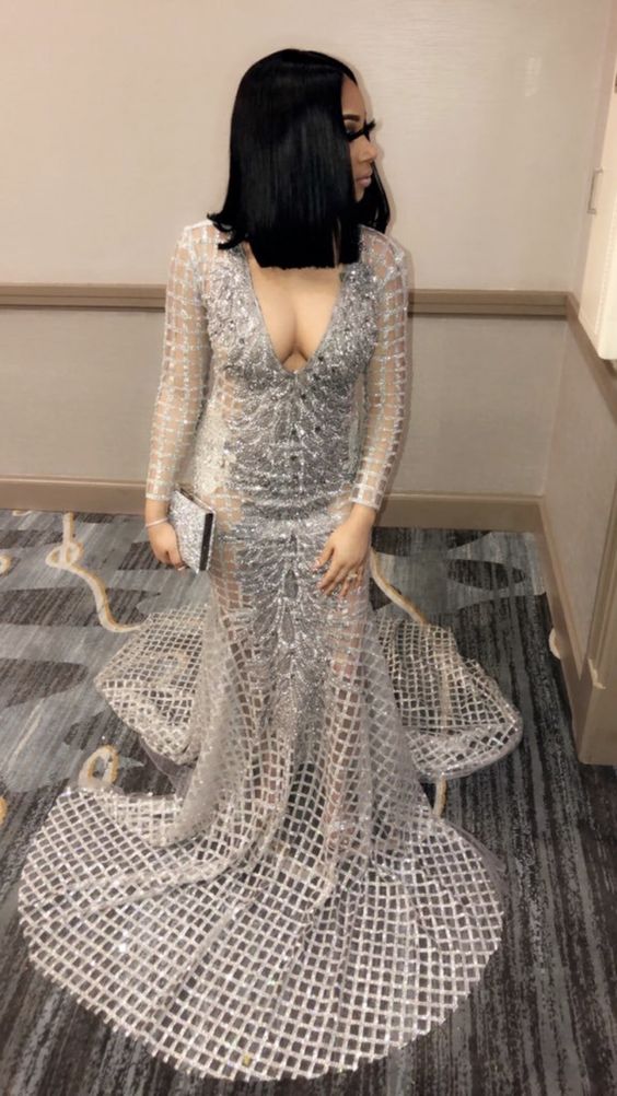 Silver Mermaid Sequins Lace African Prom Dress Evening Dress