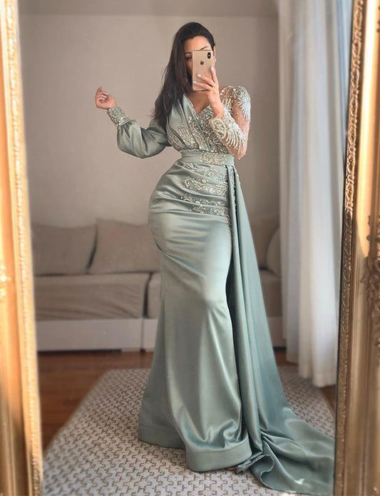 Baby Blue Mermaid Lace Appliques Muslim Prom Dress Evening Dress