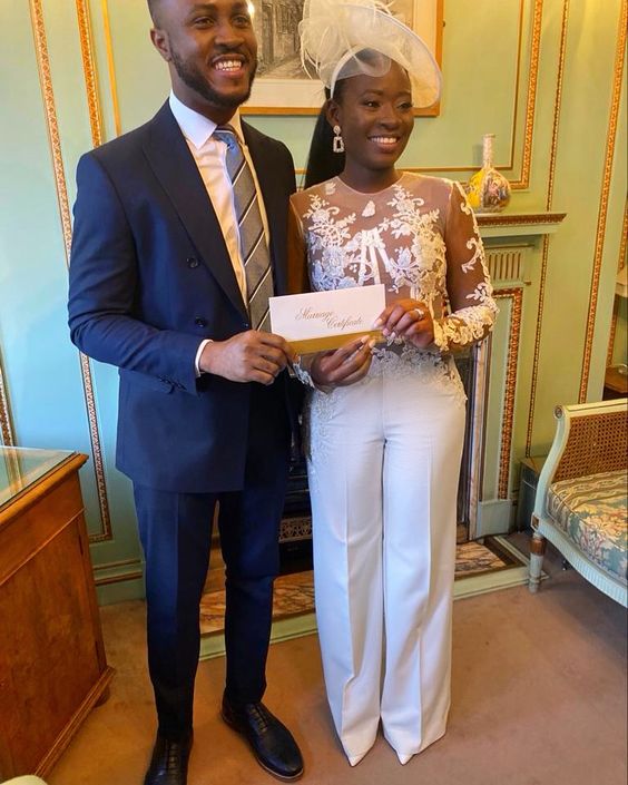 Simple Sheath Lace Long Sleeve African Wedding Jumpsuit Bridal Jumpsuit