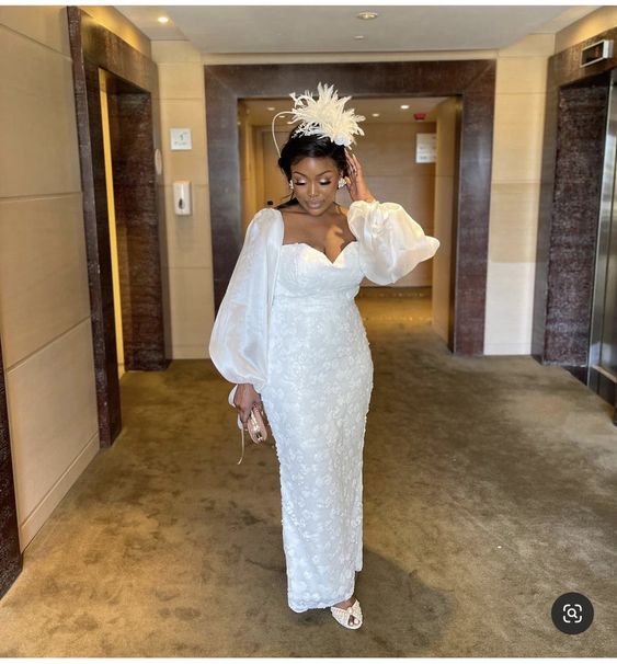 Simple Sheath Lace Long Sleeve African Wedding Dress Bridal Dress