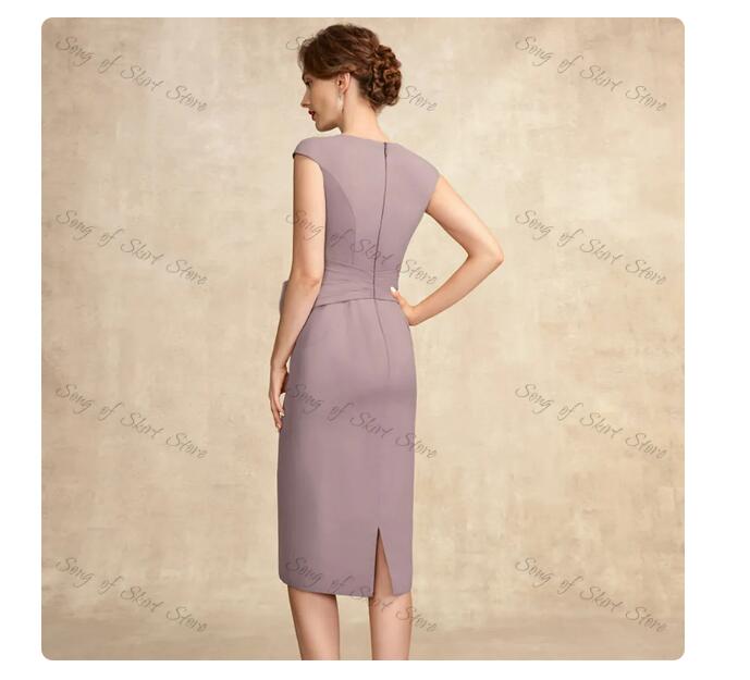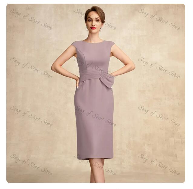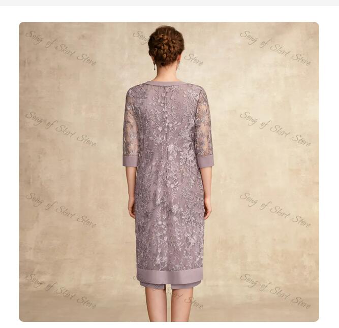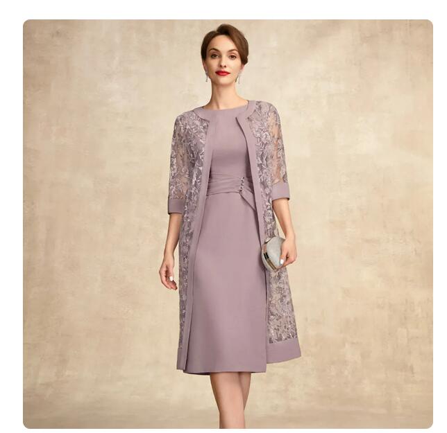 O-Neck A-Line Mother of the Bride Dresses With Lace Jacket Pleat Beading Tea-Length Mother Formal Wedding Guest Gown