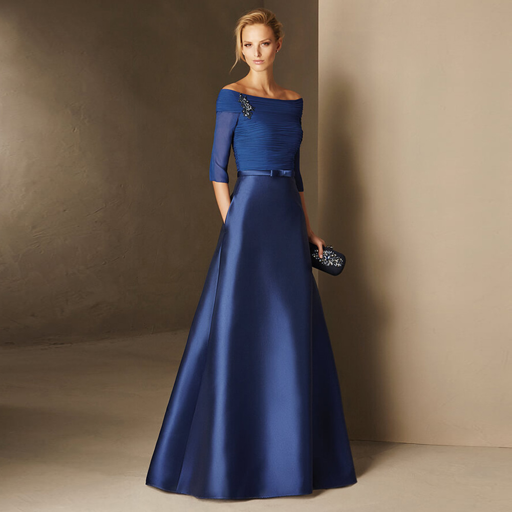 Elegant Navy Blue Mother of the Bride Dresses For Weddings Off Shoulder Half Sleeves Floor-Length A-Line Wedding Party Gowns