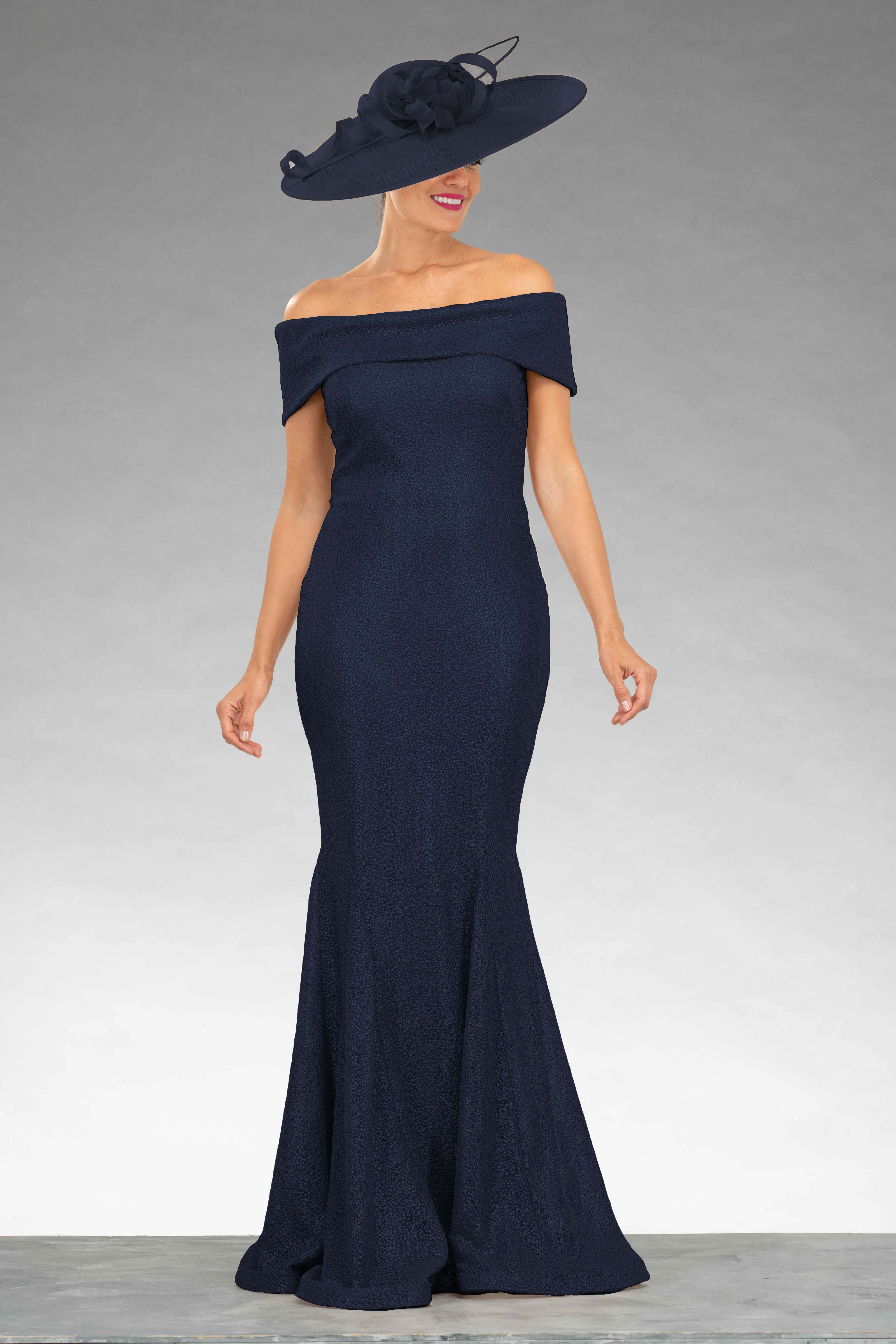 Custom Made Mermaid Navy Oyster Full Length Bardot features Mother of the Bride Dresses