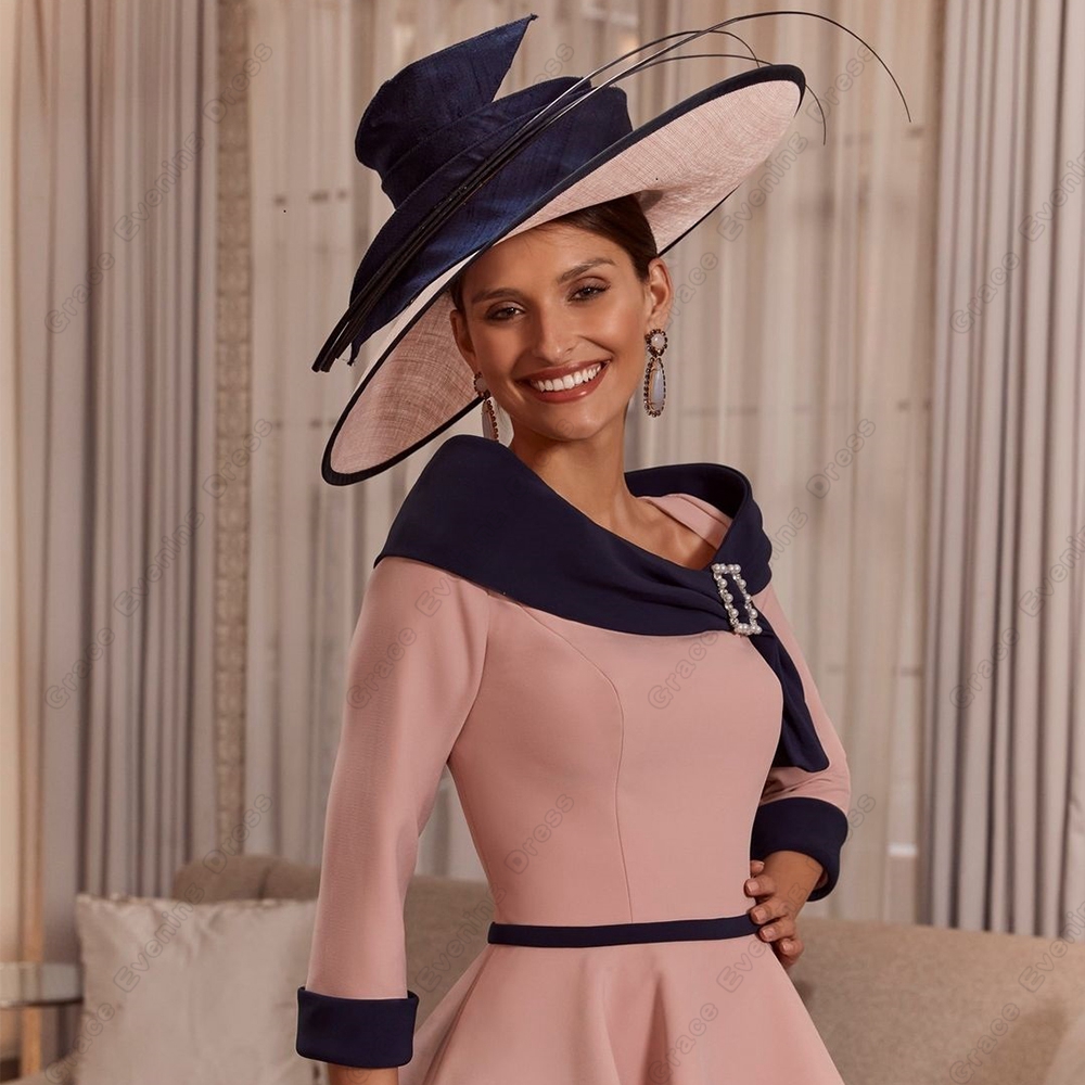 Sheath Mother of Bride/Groom Dresses for Women Three Quarter Strapless Wedding Party Gown with Belt Vestido De Noche Summer