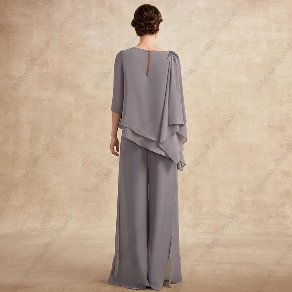 Fashion Grey Scoop Mother of Bride/Groom Dresses for Women Chiffon Wedding Party Gown Pleat Beading Vestido De Noche 2023 Summer