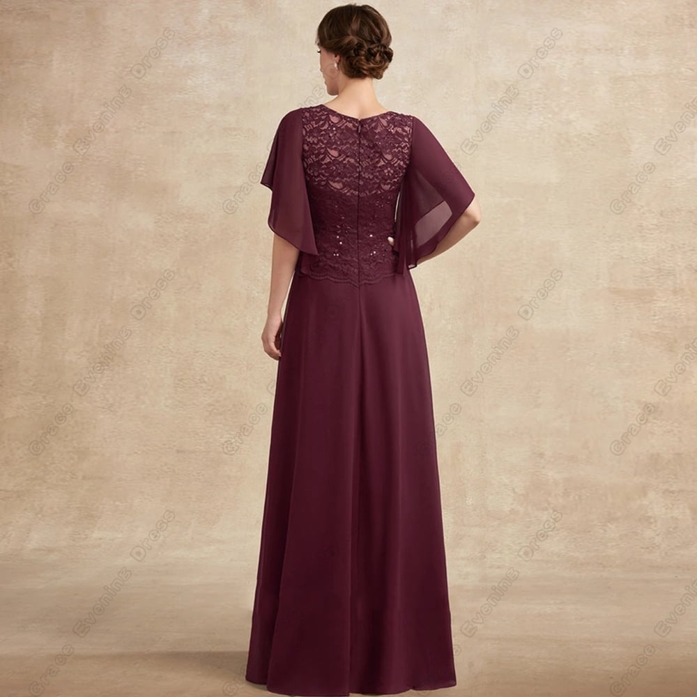Burgundy Scoop Mother of Bride/Groom Dresses for Women Chiffon Beach Wedding Party Gown with Lace 2023 Summer Vestido De Noche