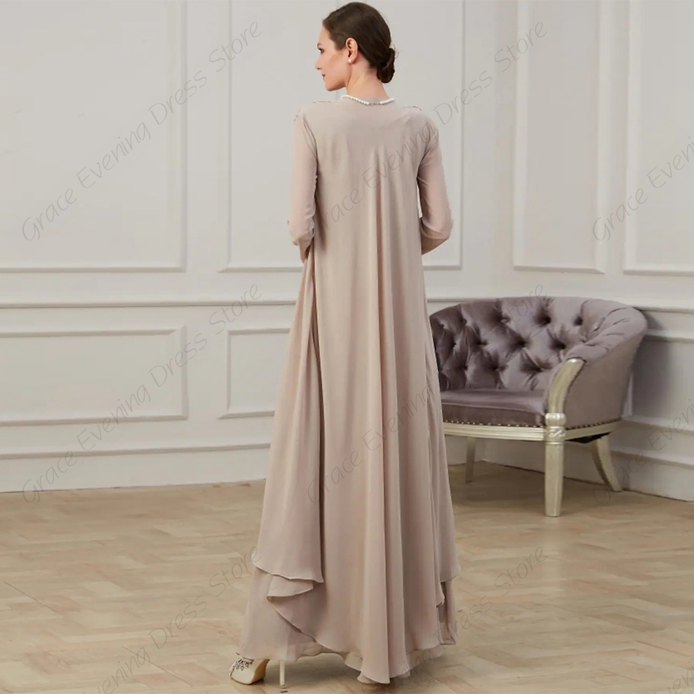 Ankle Length Charmpagne Mother of Bride/Groom Dresses with Lace Full Sleeve Wedding Party Gown for Wedding 2023 Robe De Soirée Summer