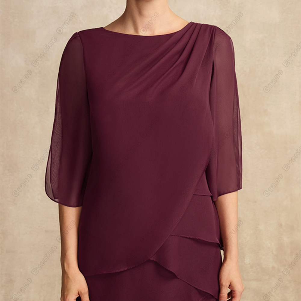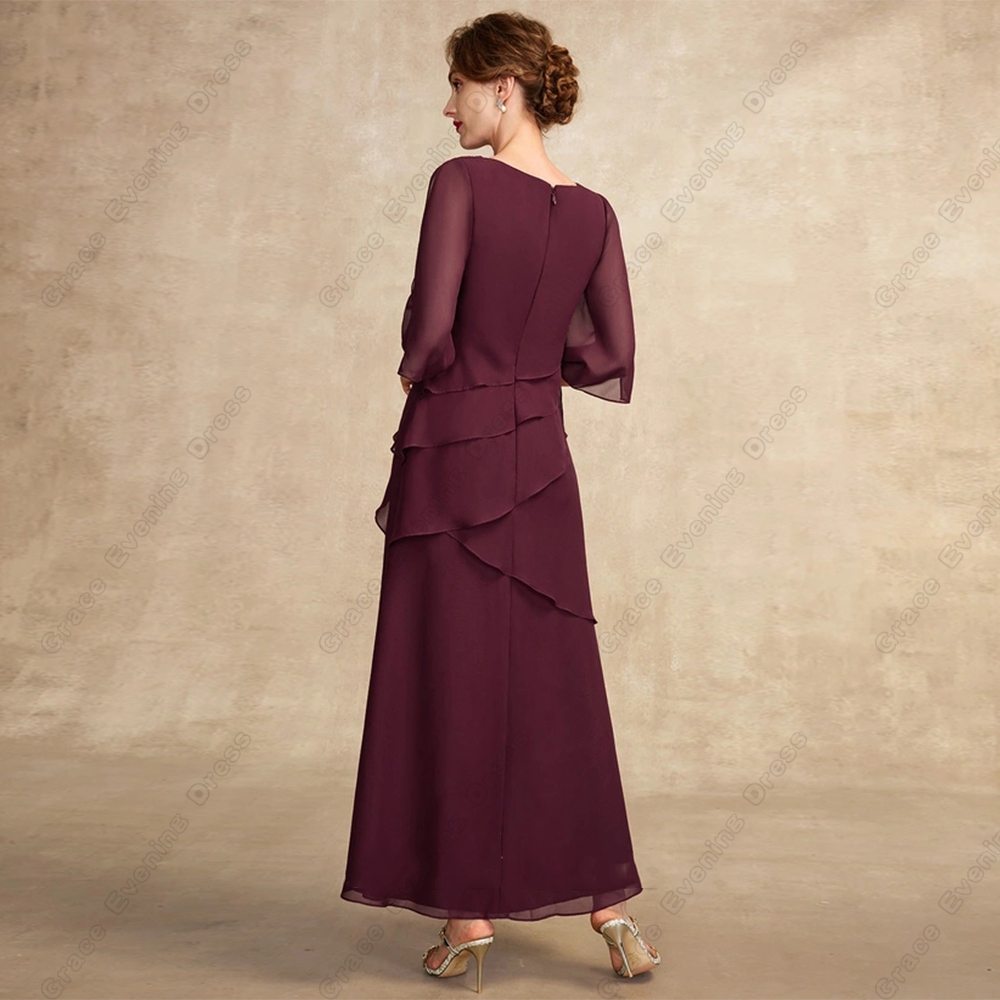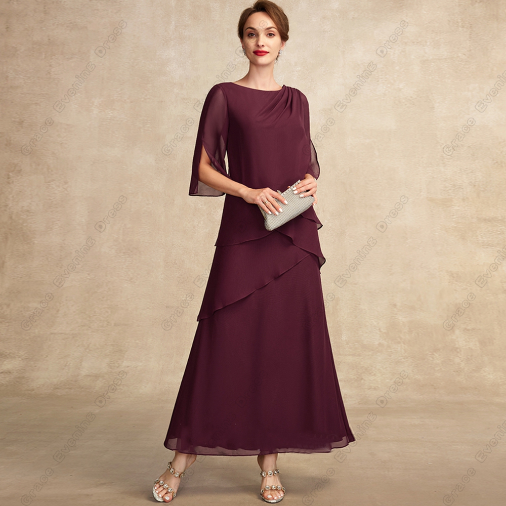 Gorgeous Scoop Half Sleeve Mother of Bride /Groom Dresses for Women Ankle Length Wedding Party Gown 2023 Summer