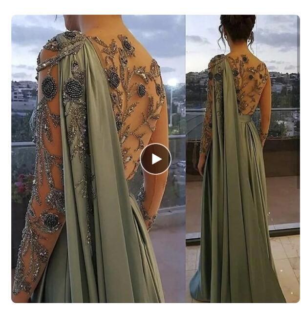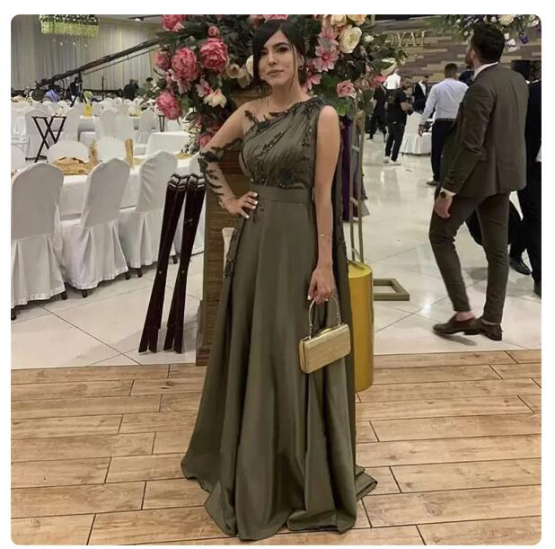 Beaded Lace Olive Green Muslim Mother Of Bride /Groom Evening Dress Luxury Dubai Women Wedding Party Gown Custom Made