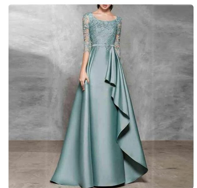 Satin Simple Mother of the Bride/ Groom Dress 3/4 Sleeves A-Line Wedding Guest Gowns Applique Zipper Dress Women For Wedding Party