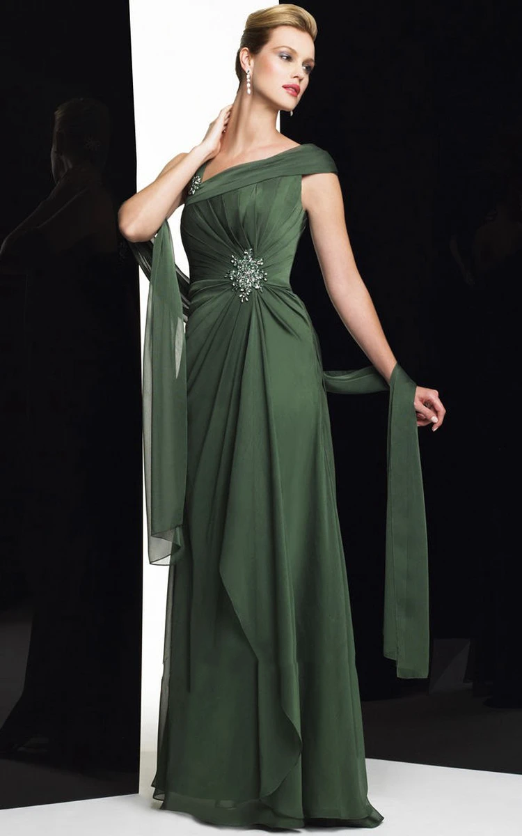 Sage Green Pleat Chiffon Mother of Bride/Groom Dresses With Diamond Decoration Summer Wedding Evening Party Gown For Women