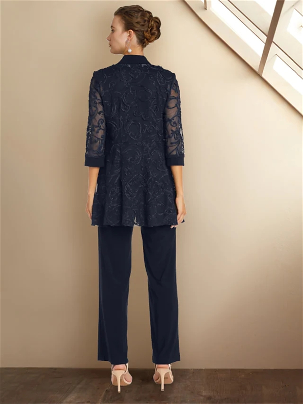 Pantsuit 3 Piece Suit Mother of the Bride /Groom Dress Elegant Wrap Included Jewel Neck Chiffon Lace Sleeveless with Appliques