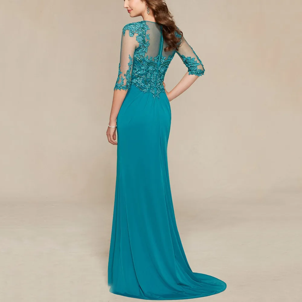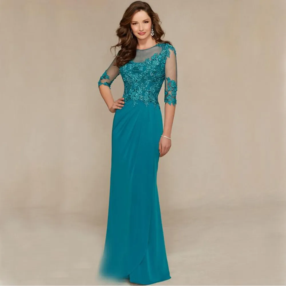 Half Sleeves Mother Of The Bride Dress Lace A-Line Party Formal Weddings Groom Godmother Dresses With Beaded Plus Size