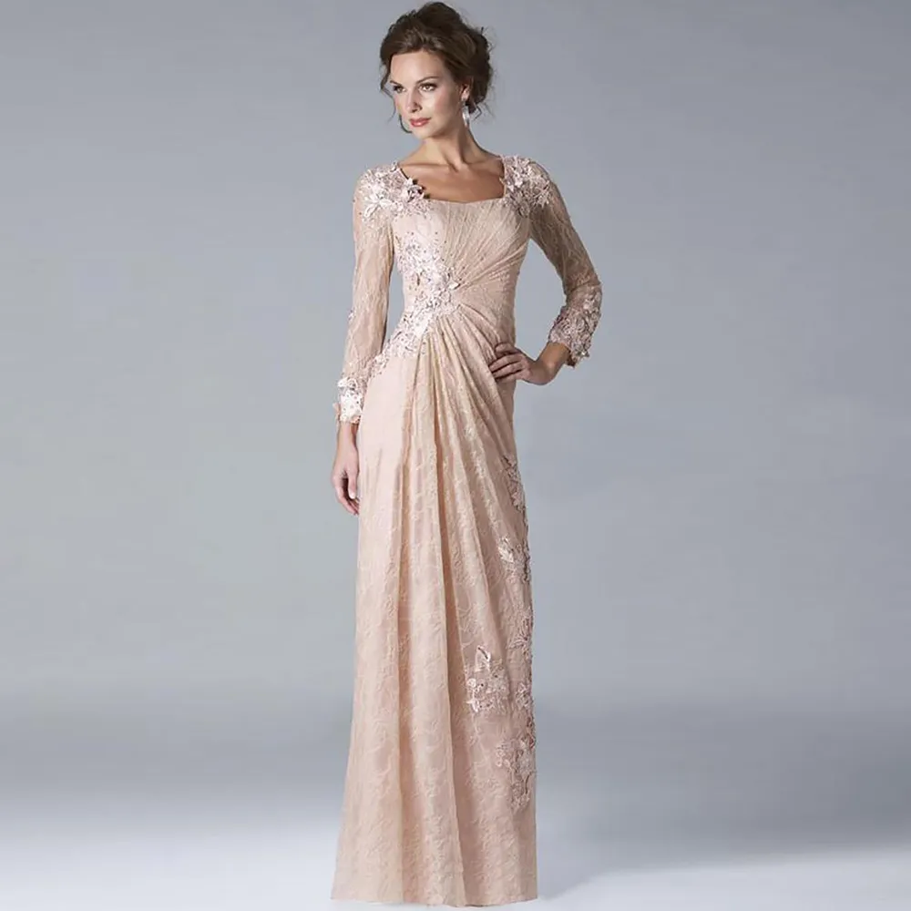 Modern Mother of the Bride/Groom Dresses Square Neck Full Sleeve Lace Appliques Evening Party Dress for Mother of Groom