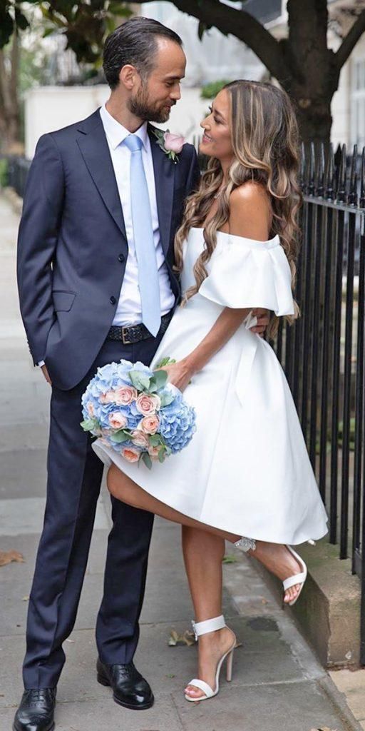Simple Short Sleeve Off the Shoulder Tea-length Beach Boho Wedding Dress Bridal Gown