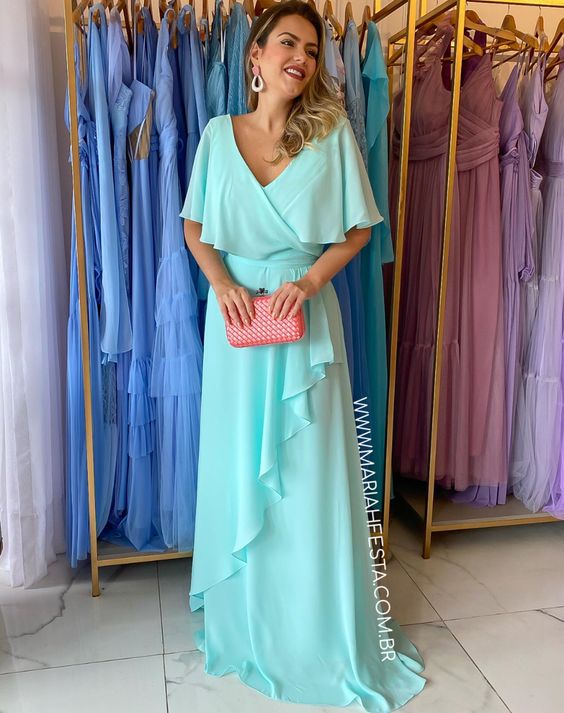 Elegant Blue Chiffon Mother Of the Bride/Groom Dress Evening Formal Dress