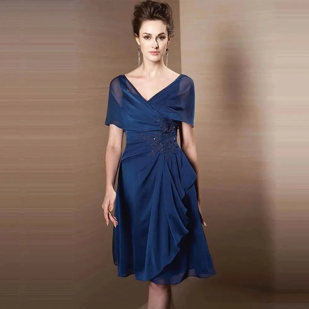 Elegant Mother Of The Bride Dress Chiffon A Line Double V Neckline Short Sleeves Godmother Wedding Party Gowns