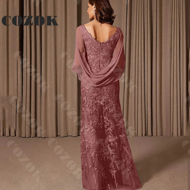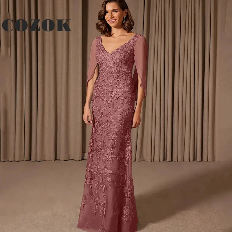 Elegant Appliques Mother of the Bride Dresses 2024 V Neck With Sleeve Mermaid Floor-Length Women Formal Gowns Custom