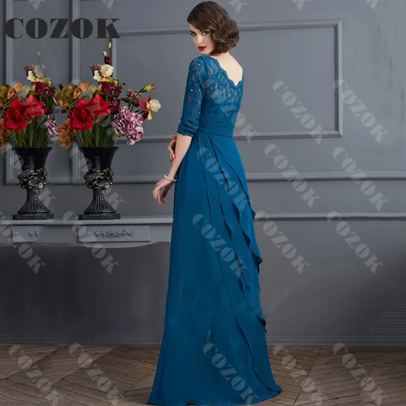 Half Sleeve Chiffon V Neck Mother Of The Bride Dress Floor Length A Line Gown Vestidos Madrina Madre De La Novia Custom