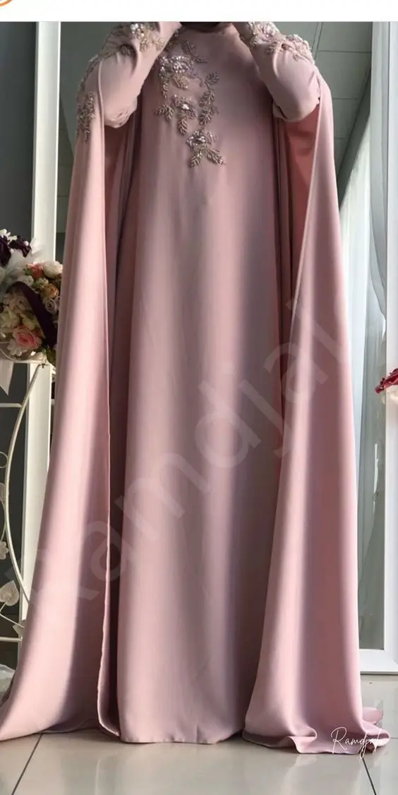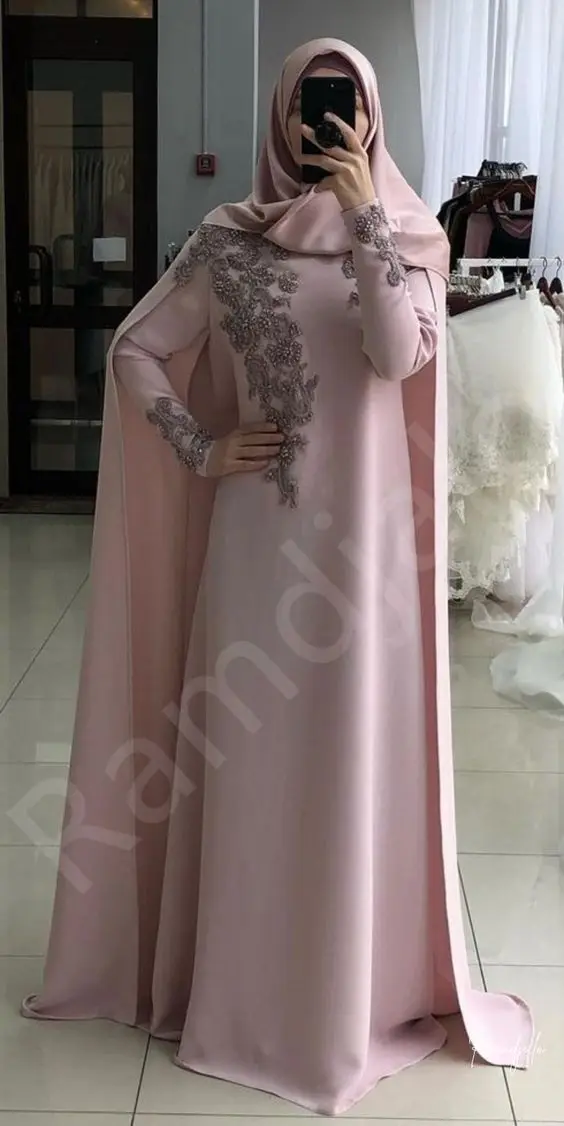 Mother of The Bride Dresses with Long Cape Long Sleeves Appliques Muslim Saudi Arabia Arabic Wedding Party Gowns Vestidos Feista