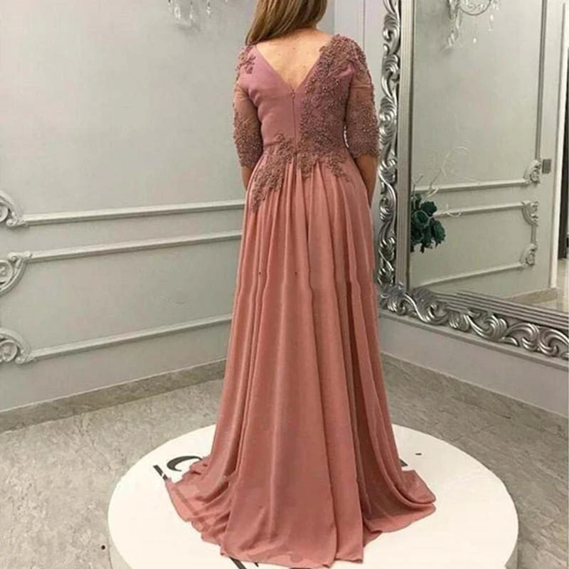 Mother of the Bride Groom Dress with Overskirt Chiffon Square Neck Half Sleeve Evening Party Wedding Guest Formal Prom Gown