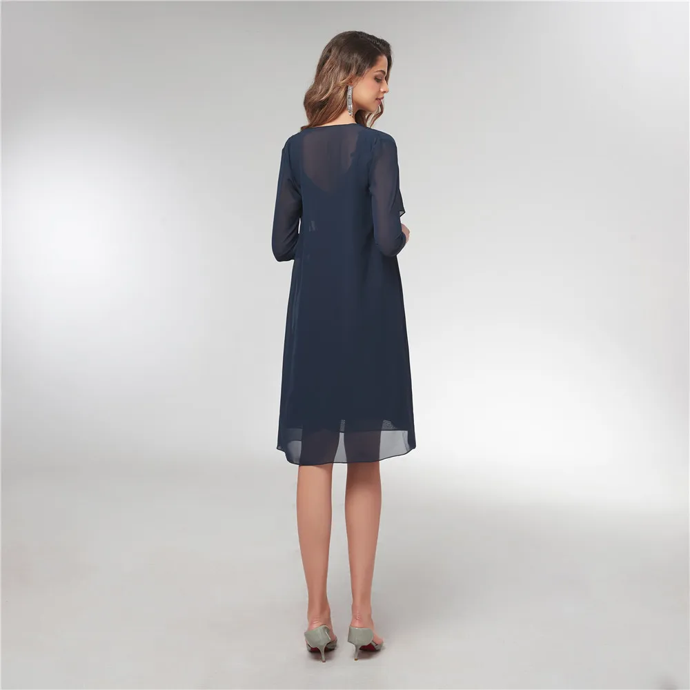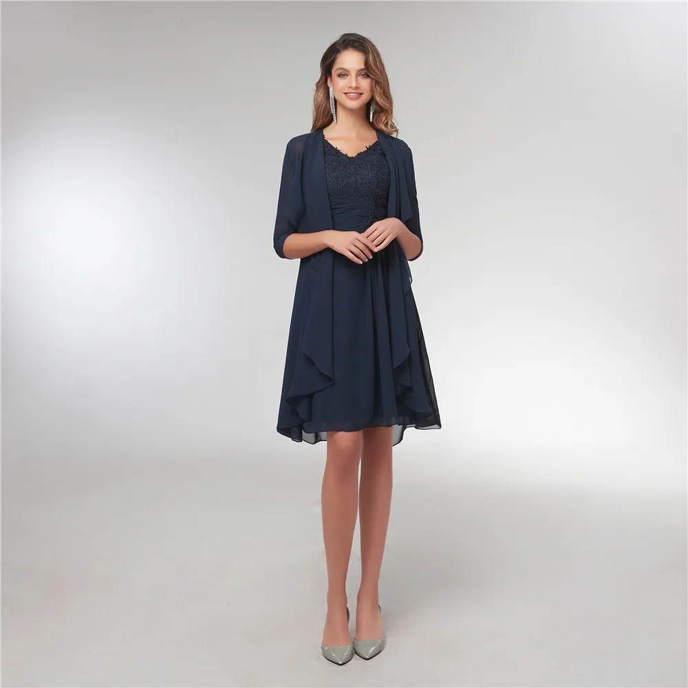 Two Pieces Mother Of The Bride Dresses Lace Appliques Knee Length Chiffon Evening Gowns Plus Size Mother Dress Formal Wear
