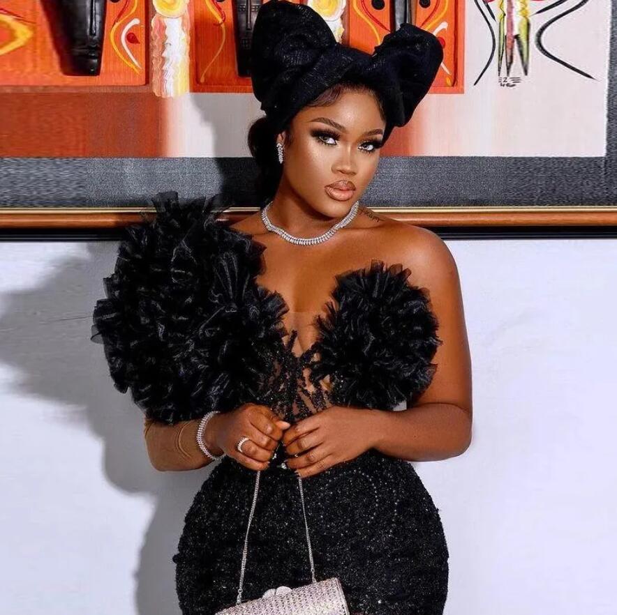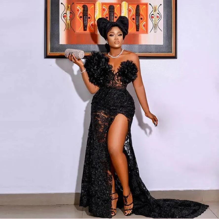 sexy Black Thigh Split Mermaid Prom Dresses For African Girl Lace Beaded Reception Evening Gown
