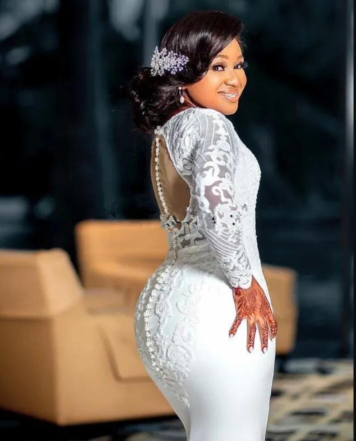 White Lace Plus Size Wedding Dress Beaded Mermaid Wedding Gown