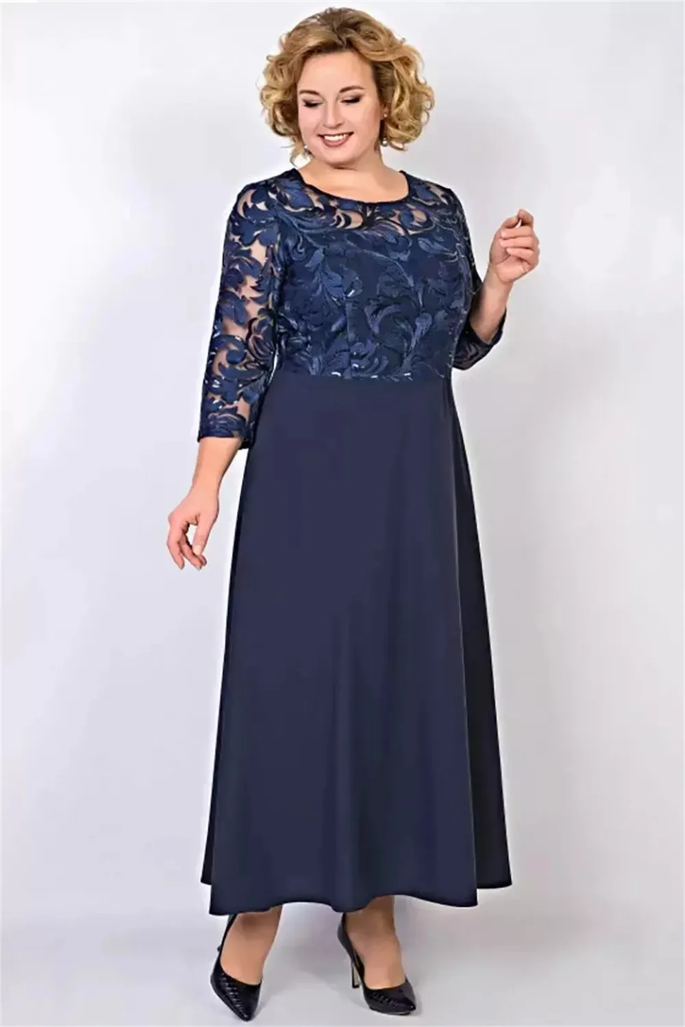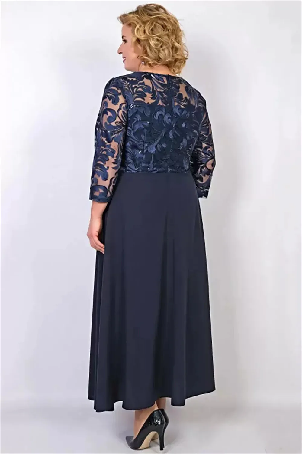 Navy Long Sleeves Lace Mother Of The Bride/ Groom Dresses A-Line Jewel Neck Wedding Guest Dress Ankle Length Chiffon Evening Gowns