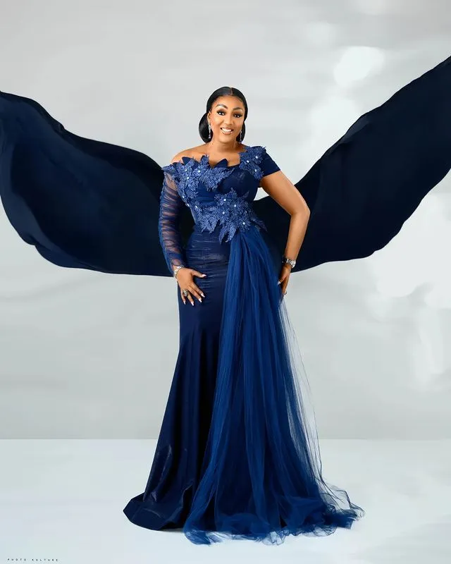 Navy Blue Mermaid Mother Of Bride/Groom Dresses Crystals Lace Evening Prom Formal Party Birthday Celebrity Mother Of Groom Gowns Dress