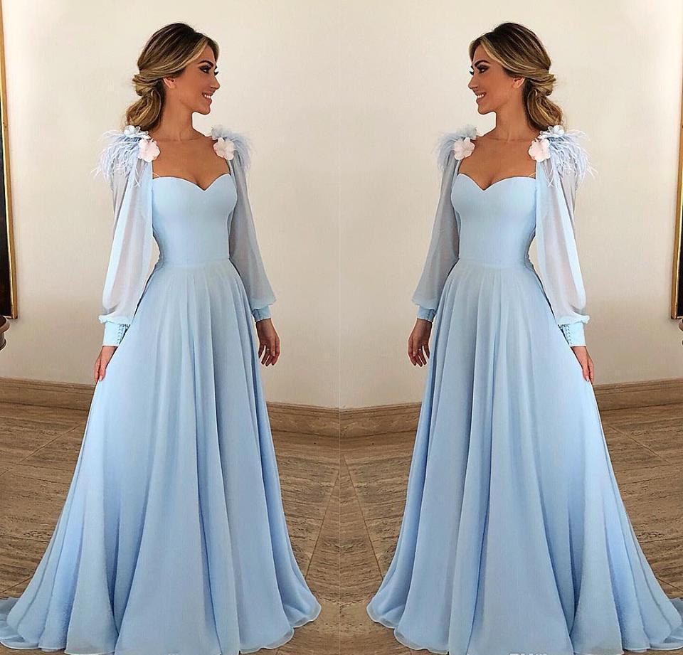 Mother of the Bride/Groom Dresses Sky Blue Long Sleeves Formal Godmother Evening Wedding Party Guests Gown