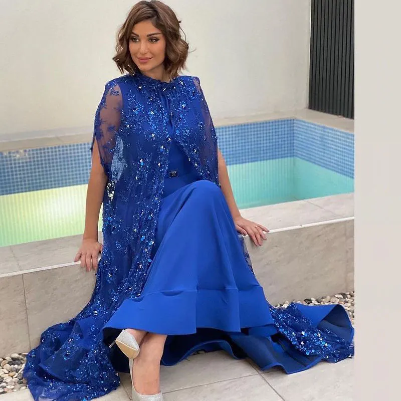 Royal Blue Mother of the Bride/ Groom Dresses with Jacket 2 Pieces A Line Formal Gown Sequined Coat