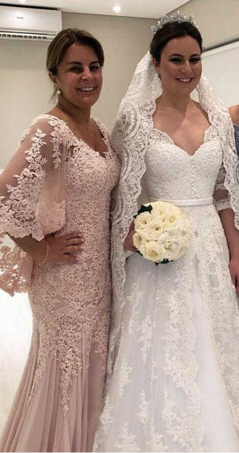 Plus Size Light Pink Lace Appliques Mother Of The Bride/Groom Dresses Formal Gown