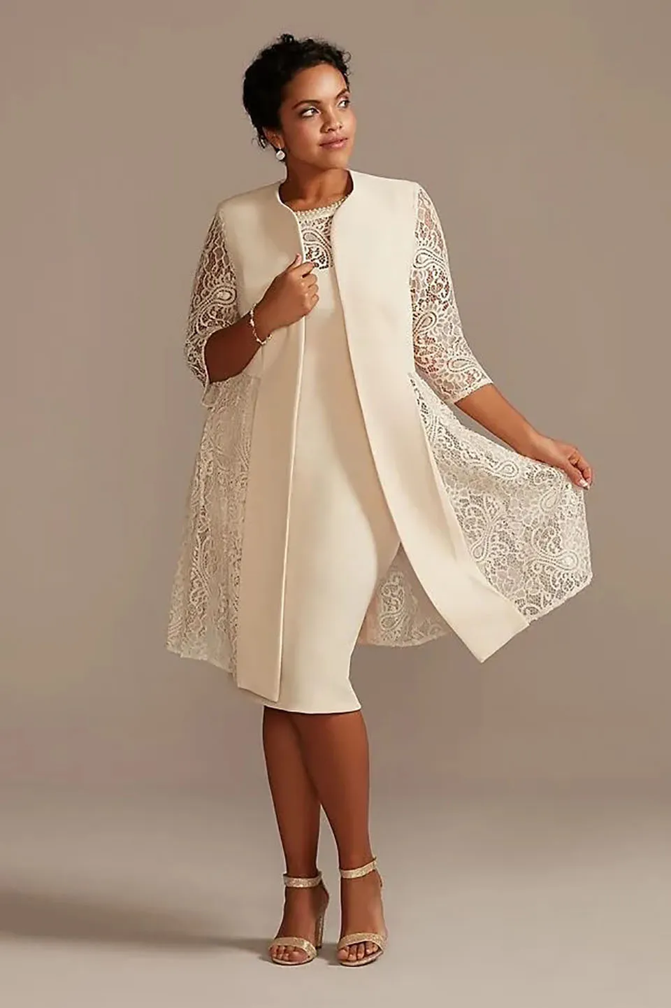 Mother's Dresses Ivory Mother Of The Bride Scoop Knee-Length Plus Size Custom Zipper Lace Up New Formal Straight Satin Lace
