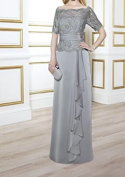 Elegant Mother of the Bride Dresses Light Gray Satin Chiffon with Lace Top Zipper Back Mother's Dresses Off Shoulder Custom Made
