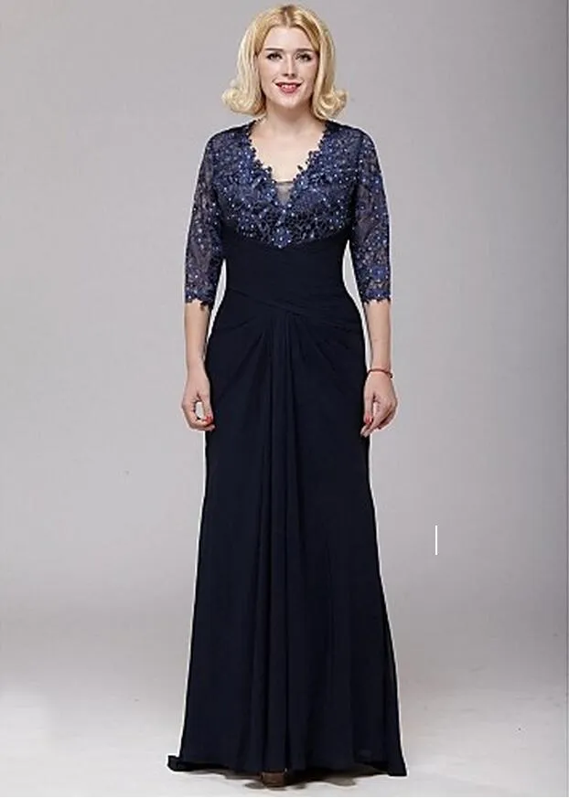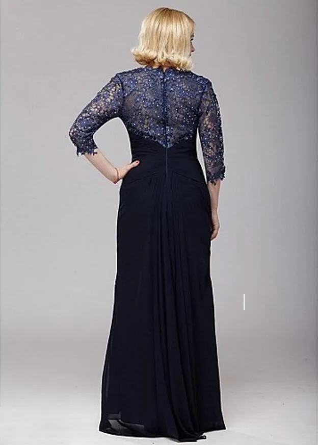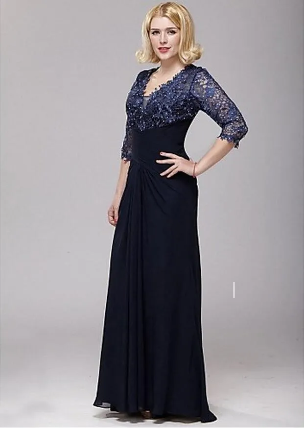 Sheath V-neck A-line Lace and Chiffon Mother of the Bride/ Groom Dress 3/4 Sleeve Floor Length Mother's Dresses