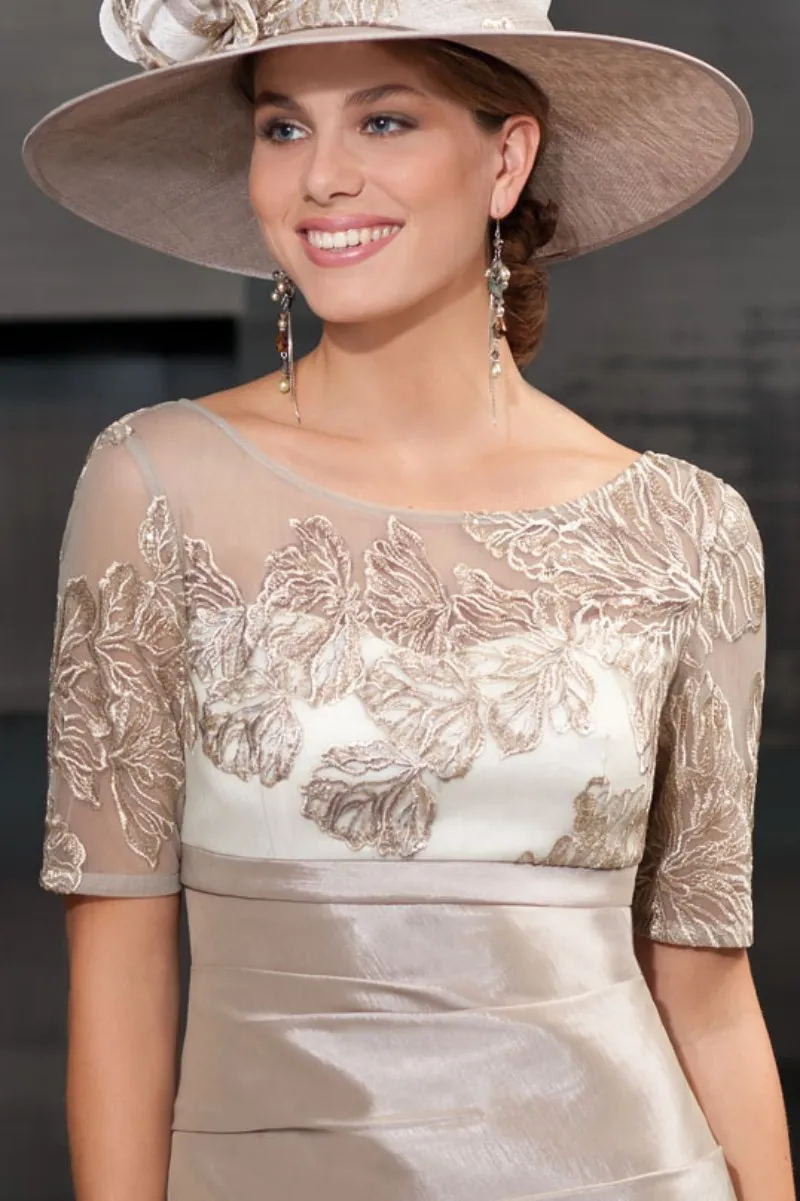 Mother of The Bride / Groom Dress Jewel Neck Short Sleeve Applique Two Pieces Wedding Guest Dresss Knee Length Evening Gown