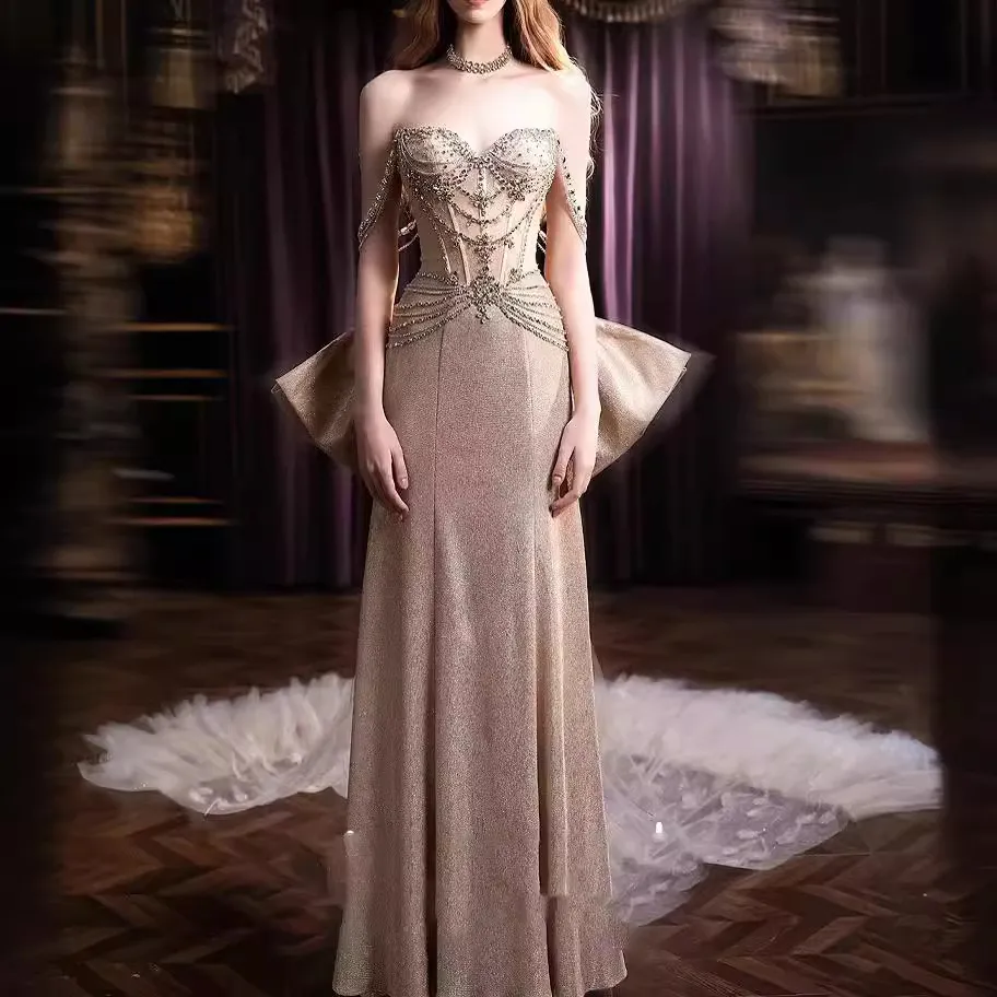Mermaid Mother Of The Bride /Groom Dresses Arabic Blush Lace Beaded Evening Prom Formal Party Birthday Celebrity Mother Of Groom Gowns Dress