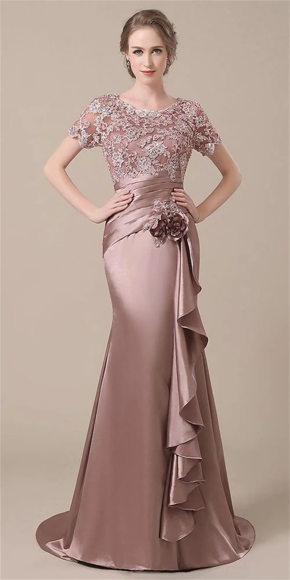 Mother of the Bride Dresses Satin Bridal Floral Wedding Dress Applied Lace Elegant Evening Formal Dress